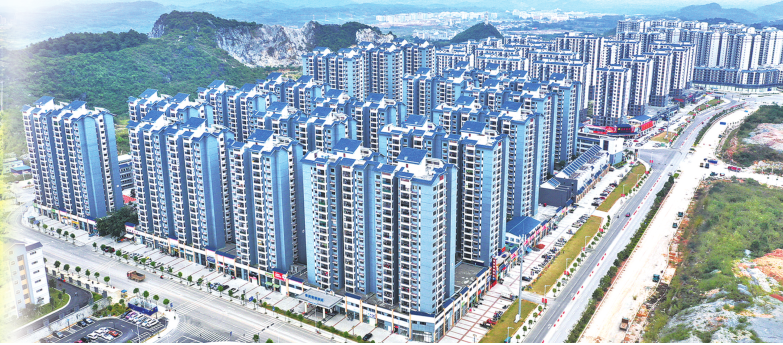 按照“一个家、一个学位、一个岗位”的移民搬迁思路,隆安县全面完成24423人搬迁任务,为贫困户在震东新区安置了一个全新的家。图为震东新区全貌。本报记者黄红锦摄