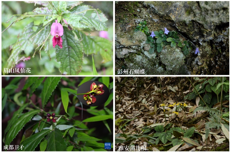 眉山凤仙花、彭州石蝴蝶、成都卫矛、雅安蒲儿根。四川省生态环境监测总站供图