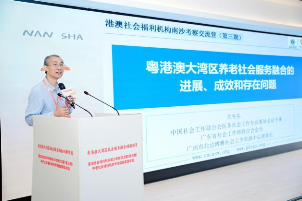 广东省社会工作师联合会会长关冬生则围绕粤港澳大湾区养老社会服务融合的进展、成效与存在的问题进行分享,客观分析当前湾区养老服务融合发展的现状与痛点,为后续深化合作指明优化方向。